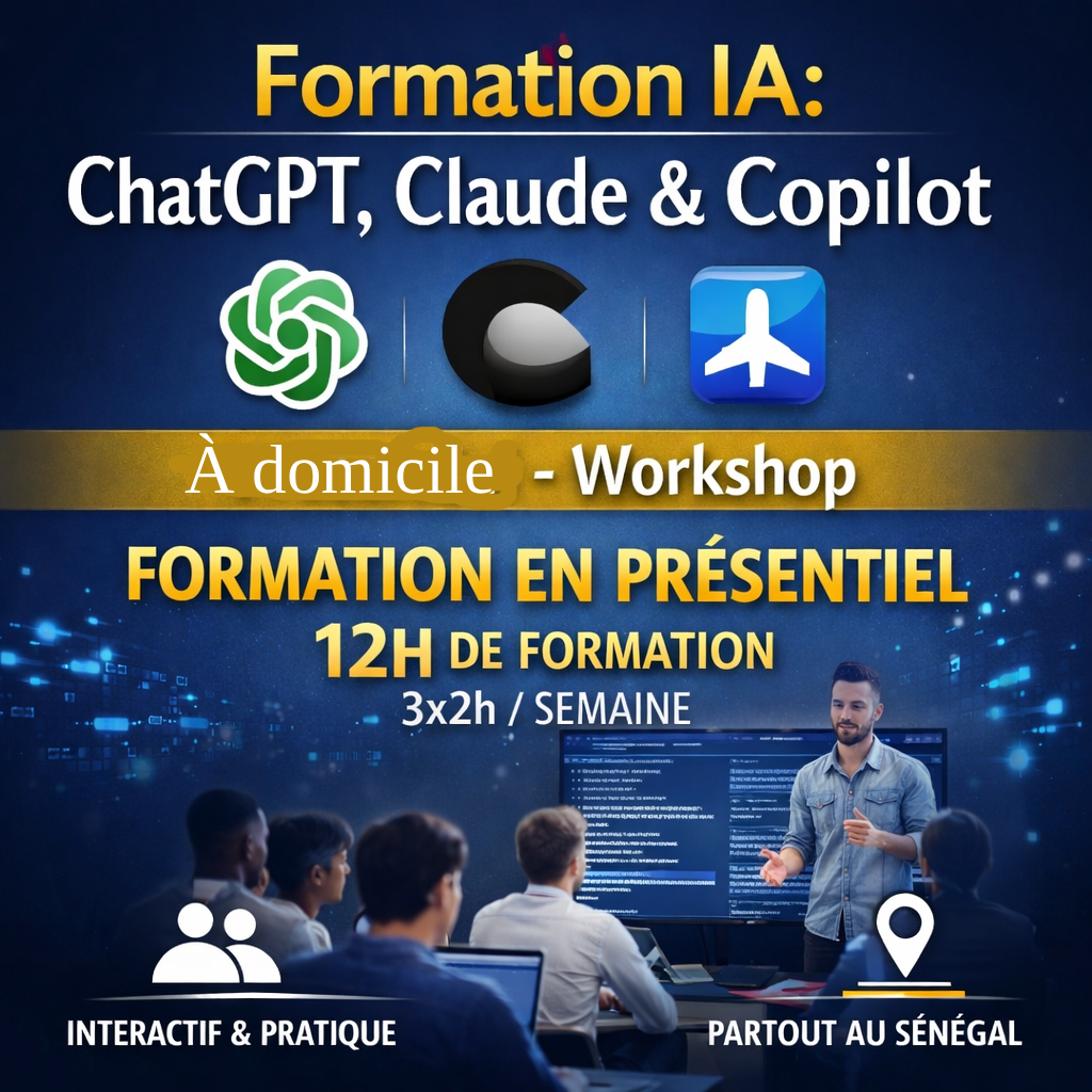Cette formation en IA vise à permettre aux professionnels, entrepreneurs, étudiants et organisations de maîtriser l’usage pratique des outils d’intelligence artificielle (ChatGPT, Claude, Copilot) afin d’augmenter leur productivité, améliorer leur communication, créer des contenus de qualité et concevoir leurs propres assistants IA sans compétences techniques.